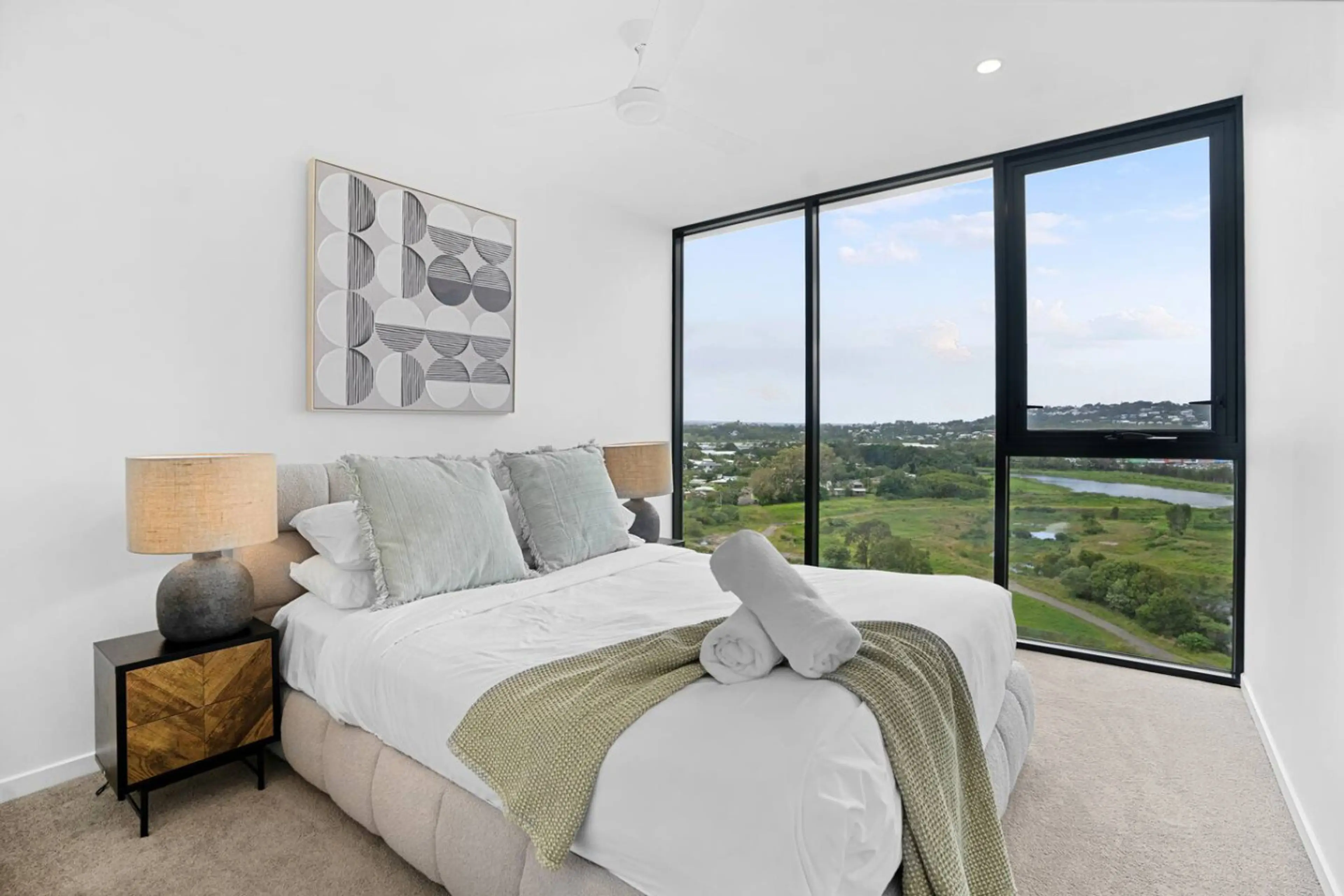 Oversized, brand-new 3BR/2BA apartment in the Corso complex, Maroochydore CBD. Enjoy mountain ridge views from the large private balcony, plus a sleek modern kitchen, open-plan living, and spacious bedrooms. Guests have access to the swimming pool and secure parking. Walk 5 minutes to Sunshine Plaza...